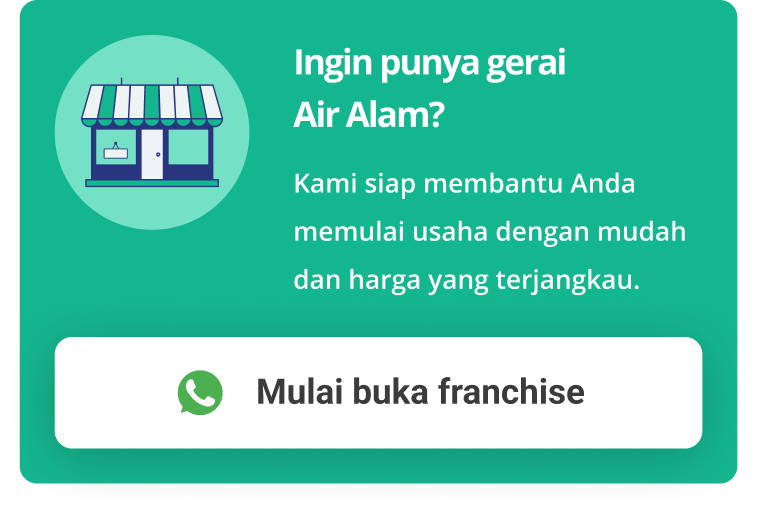 "Sebagai mitra Air Alam, saya rutin melakukan pemesanan 2 sampai 3 kali dalam seminggu dan harganya pun masih terjangkau. Selama ini, tidak pernah ada komplain dari pelanggan saya karena gerai Air Alam menjaga mutu dari air minum isi ulangnya"